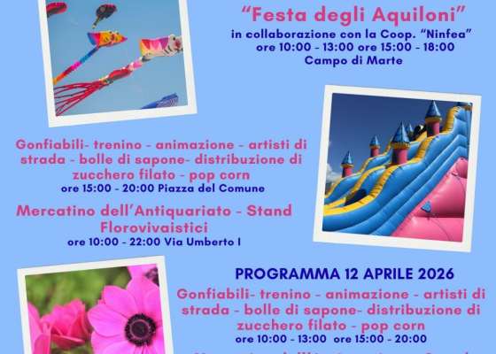Quando arriva la primavera, il cielo di Sabaudia si colora. Fine settimana di festa, tra aquiloni, trenini, mercatino dell’antiquariato e