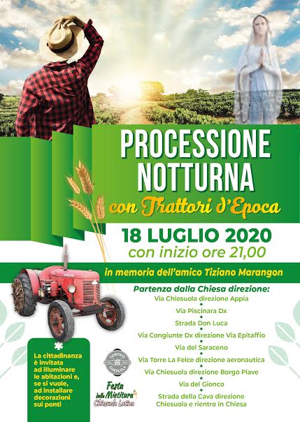 Il Comitato Chiesuola ha scelto di dedicare la serata del 18 luglio a Tiziano Marangon. “A lui e al suo incondizionato amore per la nostra terra, che ha condiviso con noi questi anni di festa, va – conclude Valletta – il nostro pensiero e ringraziamento. La Processione notturna sarà, in attesa della Festa che tornerà protagonista nel 2021, un modo per ritrovarsi anche oltre le distanze che la pandemia impone. Quando ci sono valori e tradizioni comuni, non esistono barriere capaci di fermare la nostra comunità”.