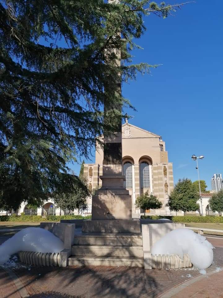Il risultato? Esattamente quello che mostra la foto, ovvero una grande quantità di schiuma bianca che fuoriesce dalle vasche sottostanti la Madonnina.