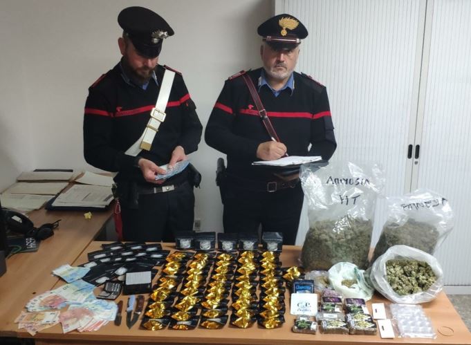 Il giovane, durante un perquisizione domiciliare, è stato trovato in possesso di 2,5 chili di marijuana e di 1,5 chili di hashish, oltre a bilancini di precisione e vario materiale per il confezionamento delle dosi. Il tutto è stato sottoposto a sequestro.