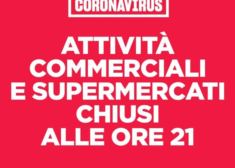 - Nessuna attività commerciale al dettaglio e all’ingrosso può nei giorni feriali, festivi e prefestivi, proseguire la vendita al pubblico con accesso ai locali oltre le ore 21,00.