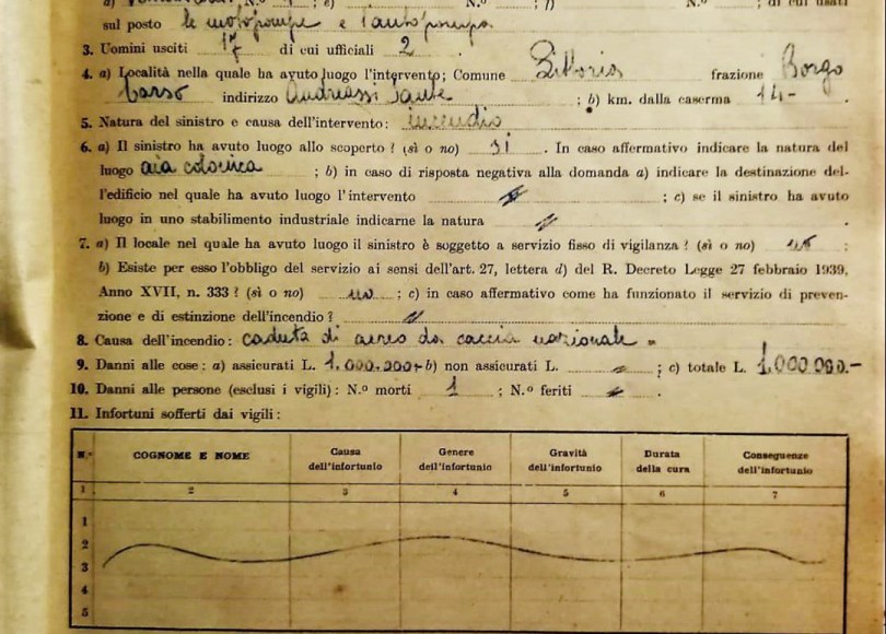 Un aereo italiano da caccia, caduto a Borgo Carso e di cui si era persa ogni traccia, “ritrovato” negli archivi del Comando Provinciale dei Vigili del fuoco di Latina.