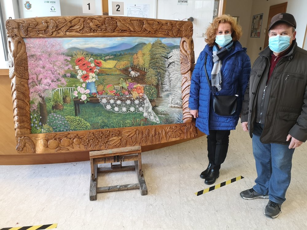 L’uno, scolpendo una meravigliosa cornice in legno formato maxi intitolata “Le quattro stagioni”, ha ispirato l’altra. L’opera d’arte è stata poi messa in palio nell’ambito di una lotteria il cui ricavato sarà utilizzato per l’acquisto di un defibrillatore.