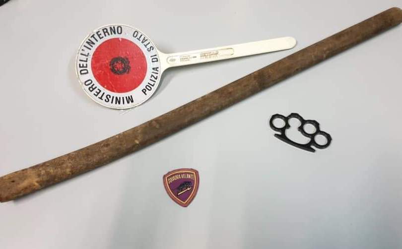 I poliziotti, all’esito del controllo, rinvenivano all’interno dell’abitacolo un grosso bastone in legno della lunghezza di 1 metro ed un “tirapugni” in acciaio, di colore nero.