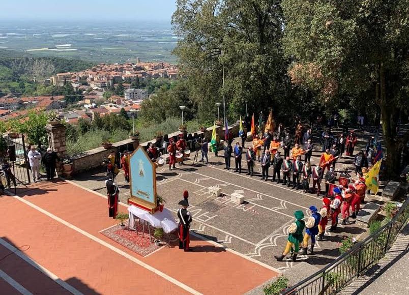 Si è svolta ieri mattina, presieduta dal vescovo Mariano Crociata, la Messa che ha aperto le celebrazioni per il V centenario dell’apparizione della Madonna del Soccorso a Cori. Alla cerimonia, oltre al sindaco Mauro De Lillis, erano presenti il prefetto Maurizio Falco, il vice presidente della Provincia Domenico Vulcano, i sindaci e rappresentanti dei Comuni limitrofi, le autorità militari tra cui il comandante del reparto territoriale dei carabinieri di Aprilia Colonnello Riccardo Barbera e il comandante della tenenza della guardia di finanza di Aprilia Capitano Luca Spedicato. Non c’era la consueta folla di fedeli a causa delle misure di prevenzione contro la pandemia da coronavirus che hanno altresì impedito lo svolgimento della tradizionale processione.