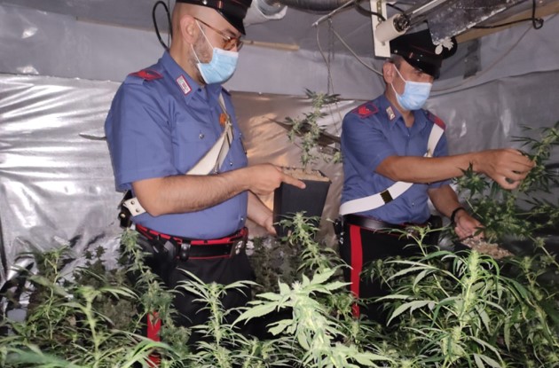 La successiva perquisizione eseguita presso una seconda casa di proprietà del 41enne ha poi consentito di scoprire la presenza di una serra destinata alla coltivazione di piante di marijuana, attrezzata con apparecchiature elettriche dedicate allo scopo, ove erano presenti in coltivazione 80 piante di marijuana suddivise tra 51 di altezza cm.30, 8 di altezza cm 35 e 21 di altezza cm.60, il tutto sottoposto a sequestro.