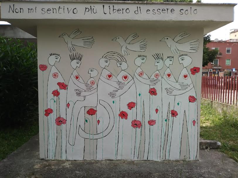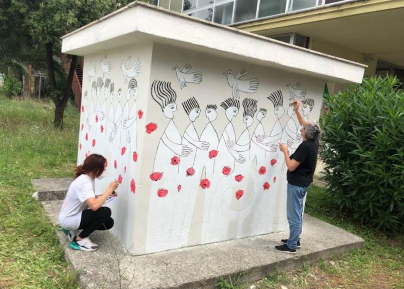 Un murales “gentile” per la Giovanni Cena di Latina. Un’opera contro il bullismo, per ricordare i valori della fratellanza e dell’amicizia con il linguaggio della street art. Lo ha realizzato l’artista Giuliana Bocconcello, che ha coinvolto Cristina Bertolissio per un lavoro a quattro mani sulle pareti di un casotto nel piazzale all’ingresso del plesso.