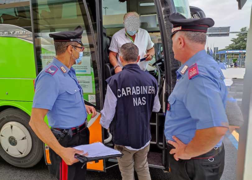 hanno determinato l’irrogazione di sanzioni per complessivi 8.400 euro. Per quanto riguarda il Nas di Latina, unitamente ai carabinieri della compagnia di Frosinone, ha effettuato, presso le autolinee di Frosinone il controllo automezzi a lunga percorrenza sanzionando 5 persone di cui 4 per aver viaggiato privi di green pass o con green pass scaduto di validità ed una per aver omesso di effettuare il controllo del green pass. A carico dei 5 soggetti sono state elevate contravvenzione per un importo complessivo di euro 2000.