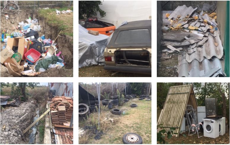 Qui sono stati trovati rifiuti abbandonati e parzialmente interrati di vario genere. In particolare, erano presenti rifiuti pericolosi e non, come lastre di eternit, calcinacci, plastiche, metalli, tre auto in evidente stato di abbandono, due cabine di furgoni in disudo.