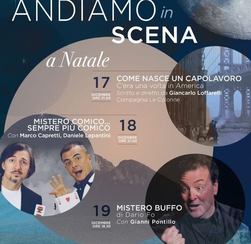 “Andiamo in scena”, a Natale ma non solo, continuando a scegliere il teatro. Dopo la fortunata ultima edizione de “Il Parco e la Commedia”, l’Associazione Pro Loco Sabaudia, in occasione dell’inizio delle festività, promuove una tre giorni che vede nuovamente protagonista il linguaggio teatrale. Tre spettacoli – venerdì 17 e sabato 18 alle 21, domenica nella pomeridiana delle 18.30 – allestiti nel Teatro di largo Giulio Cesare, messo a disposizione dalle Fiamme Gialle, che godono del patrocinio della Città di Sabaudia e del Consorzio Pro Loco Circe. La tre giorni, curata da Umberto Cappadocia con la direzione organizzativa del presidente della Pro Loco Sabaudia Gennaro Di Leva, vede nuovamente protagonista la squadra de “Il Parco e la Commedia” di cui fanno parte i tanti partner che con il loro sostegno consentono di assicurare la gratuità di ingresso a spettacoli di spessore.