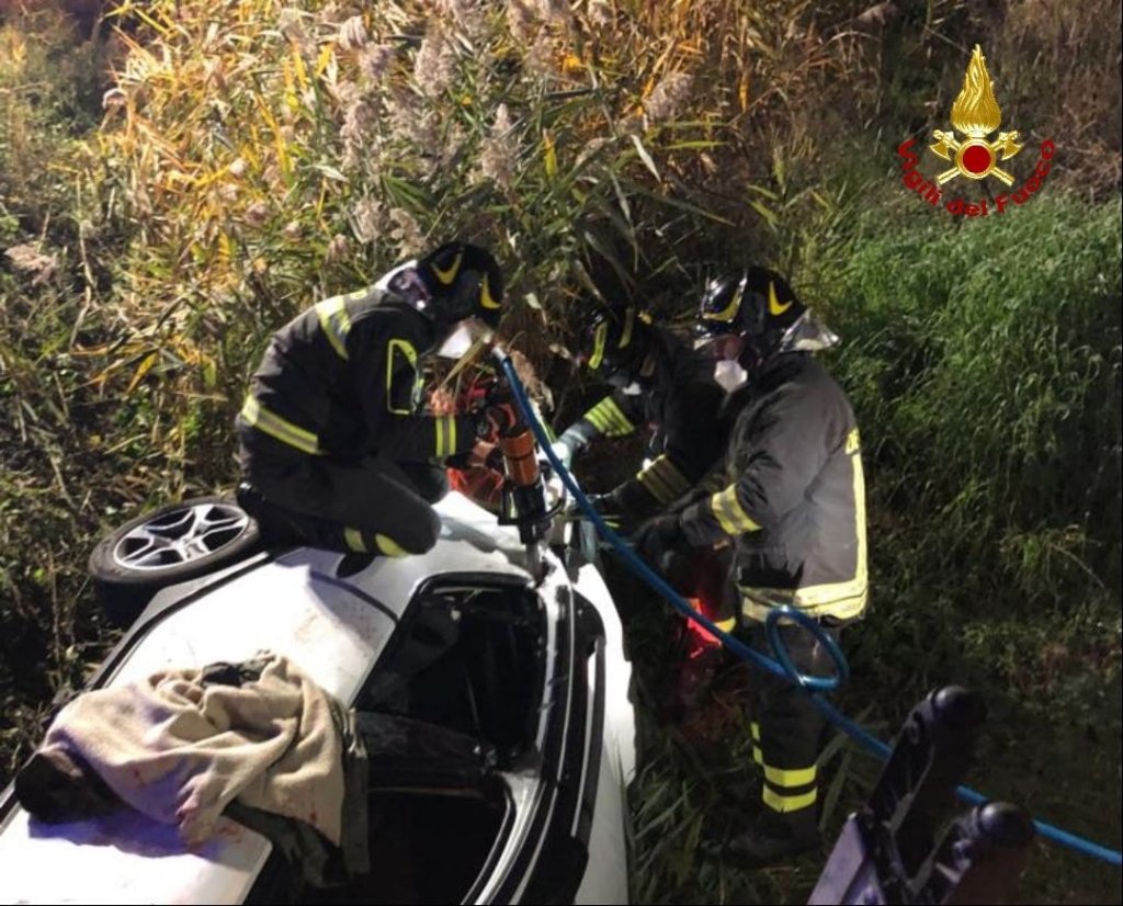 All’interno dell’auto erano presenti due persone, di cui una gravemente ferita. Quest’ultima è stata immediatamente estratta dagli stessi vigili del fuoco in collaborazione con il personale del 118 e consegnata alle cure mediche. Per accedere all’interno della vettura e dar modo al personale sanitario di stabilizzare il ferito è stato necessario l’utilizzo della centralina oleodinamica cesoie/divaricatore.