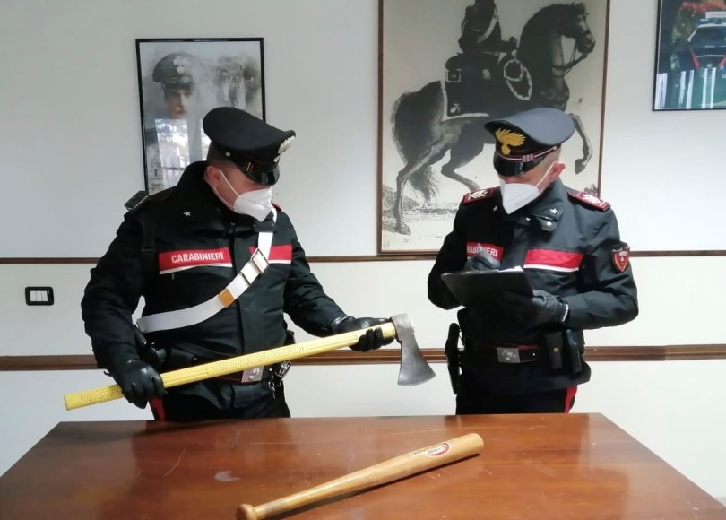 il nervosismo dei due ha indotto i militari dell’Arma ad un controllo più approfondito. La seguente perquisizione personale e veicolare ha così consentito di trovare un’ascia di circa un metro di lunghezza e una mazza da baseball di circa 70 centimetri, attribuibile al conducente e possessore dell’auto, un uomo di 34 anni, che è stato denunciato.