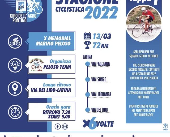 Domani 13 marzo, si terrà la gara ciclistica “X Memorial Marino Peloso”. A partire dalle ore 9 è dunque istituito il divieto di circolazione per tutti i veicoli in tutte le vie di proprietà comunale interessate dal percorso della gara che si snoderà lungo Via Faggiana, Via Isonzo, Via Litoranea, Via del Lido, per il tempo strettamente necessario al passaggio degli atleti. Il divieto di circolazione è istituito fino alle 12.30, orario presunto di fine della gara.