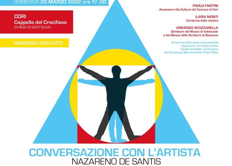 Domenica 20 marzo 2022 alle ore 17, all’interno della Cappella del Santissimo Crocifisso che affianca la Chiesa di Sant’Oliva a Cori, si terrà un talk con l’artista Nazareno De Santis, protagonista della mostra ‘Mistero in 4 atti’, inaugurata presso il Museo Diocesano di Sermoneta il 19 dicembre 2021 e visitabile fino al 27 marzo 2022. In occasione dell’ultima settimana di apertura della mostra, l’associazione Minima promotrice della mostra invita il pubblico ad approfondire la ricerca e le opere dell’artista, all’interno di uno dei luoghi che hanno partecipato al percorso espositivo. Ricordiamo, infatti, che la mostra si articola in diversi luoghi significativi del territorio pontino, includendo installazioni al Museo dell’Abbazia di Valvisciolo, a Palazzo Caetani di Bassiano e nella Cappella del Crocifisso di Cori, dove sono presenti una scultura e una videoproiezione site-specific di Nazareno De Santis. L’evento, ad ingresso gratuito, ha l’obiettivo di ripercorrere le tappe della mostra e del lavoro dell’artista, che interverrà insieme all’assessore alla Cultura del Comune di Cori Paolo Fantini, la curatrice della mostra Ilaria Monti e Vincenzo Scozzarella, direttore del Museo dell’Abbazia di Valvisciolo e del Museo delle Scritture Aldo Manuzio di Bassiano. Al termine dell’evento il pubblico potrà degustare i vini della cantina Casale del Giglio nel suggestivo chiostro di Sant’Oliva. ‘Mistero in 4 atti’ è una mostra promossa dall’associazione Minima, dal Comune di Sermoneta e dalla diocesi di Latina-Sezze-Priverno, patrocinata dalla Regione Lazio, dalla Compagnia dei Monti Lepini, dal Museo delle Scritture Aldo Manuzio di Bassiano e dal Museo dell’Abbazia di Valvisciolo.