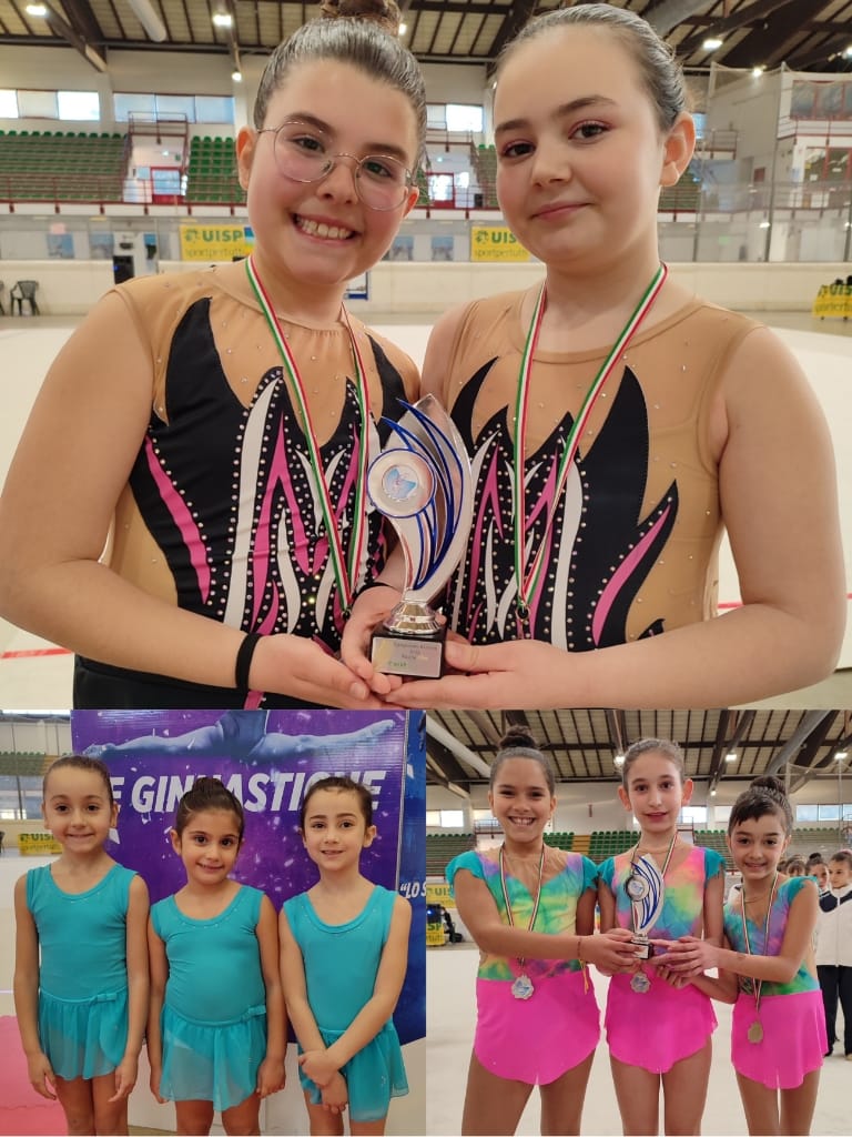 Nel pomeriggio si sono svolte le prove del “Kabaeva” ed è stato il turno di Mia Venditti, Alicya Forte e Wiam Daraoui con un esercizio sulla famosa canzone di Mina “Tintarella di luna”. Anche per queste ginnaste è stata la prima volta in pedana ma nonostante la loro tenera età hanno dimostrato grande maturità e entusiasmo nell’affrontare la gara. L’impeccabile esecuzione le ha portate a classificarsi prime.
