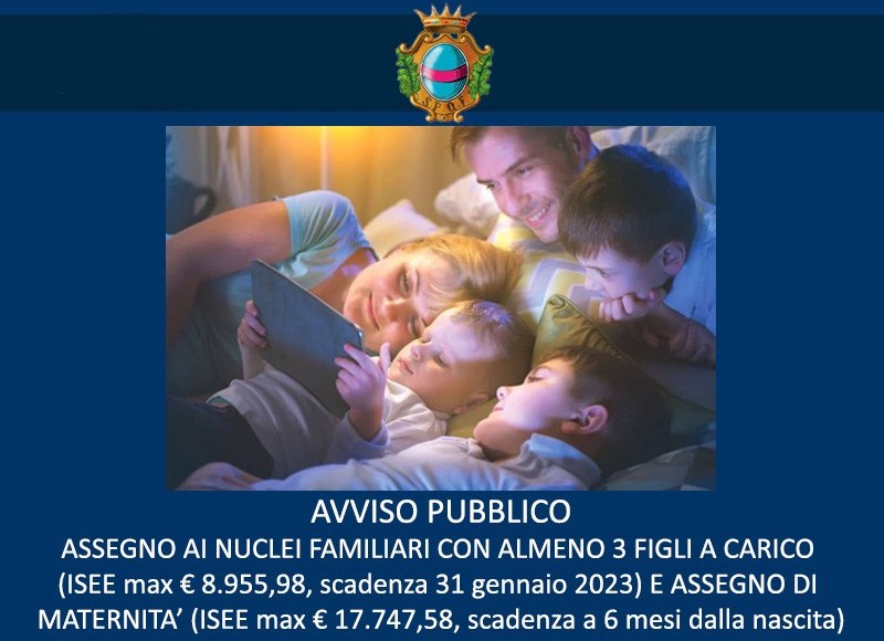 È stato pubblicato oggi sull’albo pretorio del Comune di Fondi un avviso pubblico per l’erogazione di assegni ai nuclei familiari con tre figli a carico e assegni di maternità.