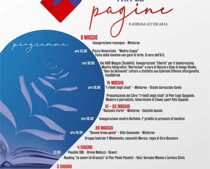 Gli appuntamenti che faranno da apripista alla kermesse saranno due e si terranno entrambi nel cuore di Minturno: alle ore 15: 30, in Piazza Annunziata, si svolgerà “Madre Lingua”, un evento che prevede attività ludiche per i bambini a tema “festa della mamma”, organizzato dall’Azione Cattolica;alle ore 18:00, in via XXIV maggio, sarà la volta della staffetta di lettura “Voci da Selinunte”, con l’accompagnamento dell’organetto di Gabriele D’Amico. L’evento verrà arricchito dalla mostra fotografica “Narrazioni” a cura di Luigi Grieco e Nunzia Borrelli di Image Studio e dall’inaugurazione della “Liberìa”, una libreria per il bookcrossing gratuito.