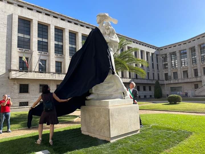 Si è svolta oggi pomeriggio la cerimonia di scoprimento delle statue di Ulderico Conti, nel cortile di Palazzo M, restaurate grazie allo strumento dell’Art Bonus.