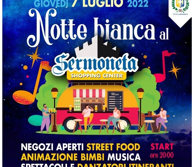 dolci e salati, animazione bimbi, spettacoli itineranti, performer che allieteranno i presenti: sono questi gli ingredienti della prima notte bianca organizzata il prossimo 7 luglio 2022, a partire dalle 20, presso il Sermoneta Shopping Center di Borgata Carrara (Sermoneta).