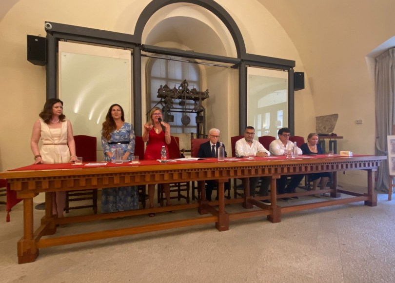 “L’ arte contemporanea – ha commentato quest’ultima – si è amalgamata in un contesto dove la storia inizia sin dai pavimenti increspati del primo piano con i reperti dell’orologio dell’Ottocento (realizzato da A. Curci di Napoli per la chiesa della Piazza di Fondi), ai ritratti che ci rivelano genealogie di grandi casate, oltre ai ritrovamenti di tutte le epoche finanche romani”.