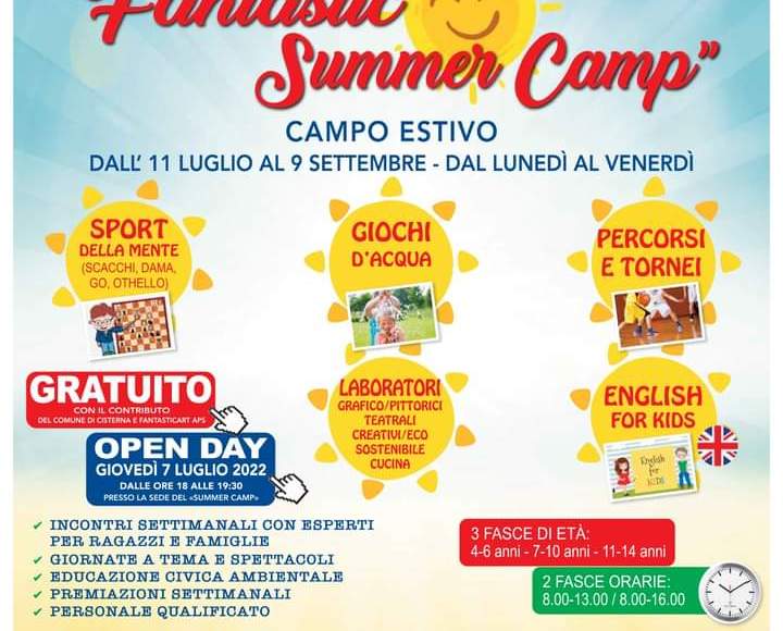 Si chiama “Fantastic Summer Camp 2022” il campus estivo che si terrà dall’11 luglio al 9 settembre presso il plesso scolastico Marcucci e Cambellotti in via Vittime del Terrorismo, nel quartiere San Valentino, organizzato in collaborazione con l’associazione di promozione sociale FantasticArt.