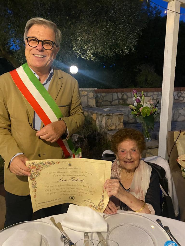 Ieri sera il sindaco di Cisterna di Latina, Valentino Mantini, ha festeggiato la signora Lea Tudini, che il 22 luglio scorso ha compiuto 100 anni. La neo centenaria si è ritrovata insieme a parenti ed amici in una splendida festa, ancor più carica di significato dopo il periodo di restrizioni vissuto a causa della pandemia.