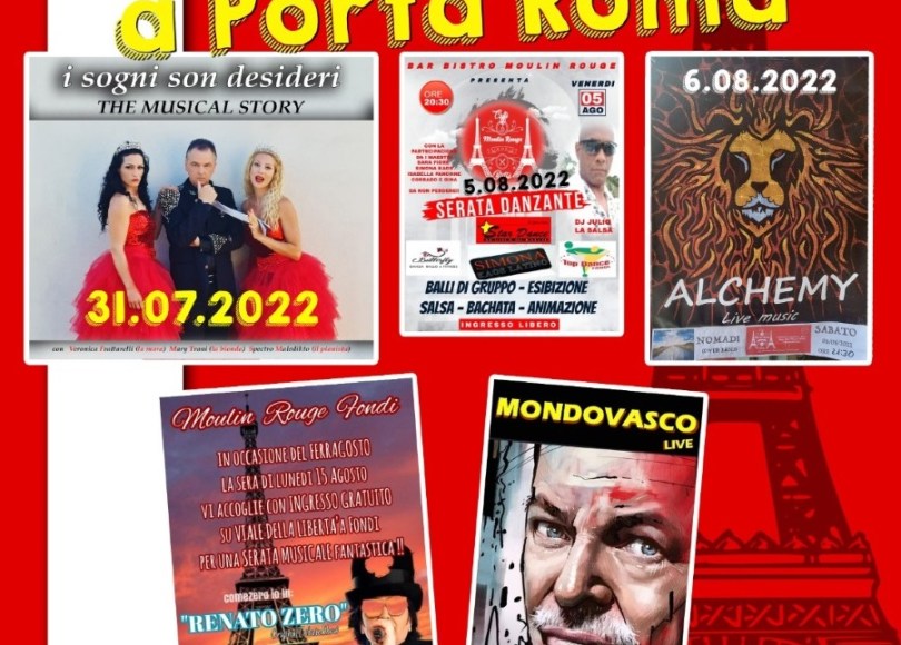 Musica, balli latino-americani, serate tutte da cantare e sangria party: anche Porta Roma ha la sua estate con un “cartellone nel cartellone” che porterà un’ondata di divertimento e spensieratezza in tutto il quartiere. L’evento, promosso dall’Associazione “Moulin Rouge” con il patrocinio del Comune di Fondi, si propone di valorizzare la zona e attrarre presenze con musica e intrattenimento. Oltre a live show e momenti danzanti, non mancheranno stand gastronomici e angoli in cui degustare sapori e sorseggiare fresche bevande.