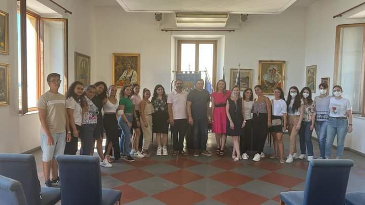 Questa mattina i volontari del Servizio Civile Universale impegnati nel Comune di Formia, seguiti dall’assistente sociale Mariangela Parasmo e dal dott. Luca Nocella, sono stati ricevuti in Sala Sicurezza dal sindaco Gianluca Taddeo, dall’assessore ai Servizi Sociali Rosita Nervino e dal presidente della Commissione Servizi Sociali Giuseppe Antigiovanni.