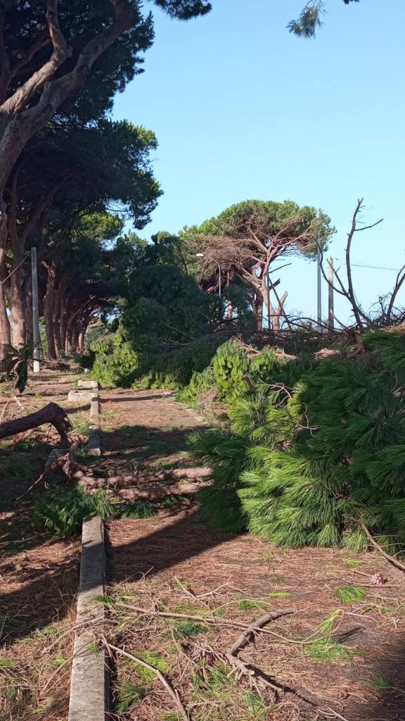 Tra le zone maggiormente colpite il capoluogo e in particolare la via Litoranea, dove tra Bella Farnia e Borgo Grappa diversi alberi sono finiti a terra e in alcuni casi hanno invaso la carreggiata (come da foto e video). Sulla via Litoranea sono al momento in corso le operazioni dei vigili del fuoco.
