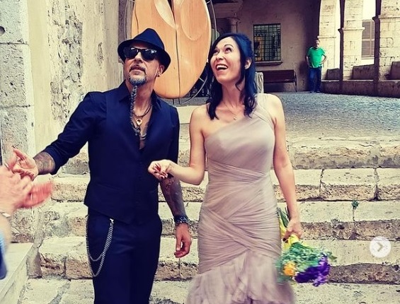 Le nozze civili sono state celebrate da un amico della coppia e alla presenza di gran parte dei colleghi musicisti dei Litfiba. Mancava solo Piero Pelù, impegnato a festeggiare il suo anniversario di nozze.