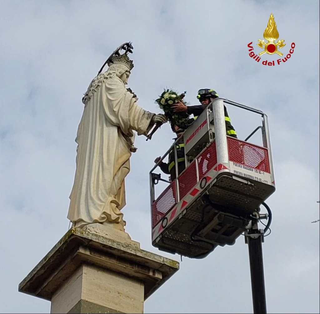 Alle 11.15 in Piazza San Marco i vigili del fuoco hanno deposto la corona sulla statua della Madonna dell’Immacolata Concezione. Prima (alle 10) identica operazione era stata fatta sulla statua della Madonna presente in Piazzale Carturan, di fronte il Comando provinciale dei vigili del fuoco.
