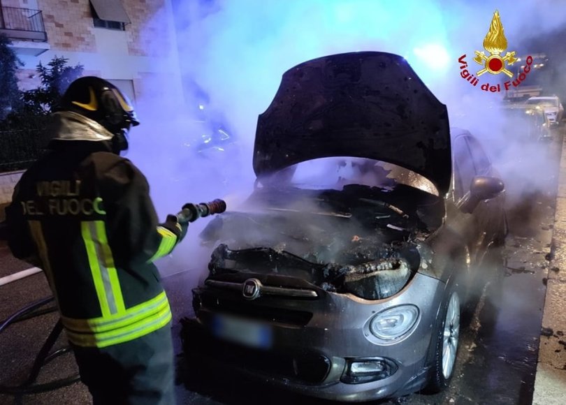 Contemporaneamente la sala operativa dei vigili del fuoco ha inviato un’altra squadra, per la stessa tipologia di intervento, in via Scaravelli, dove una Fiat 500x parcheggiata era a sua volta avvolta dalle fiamme.