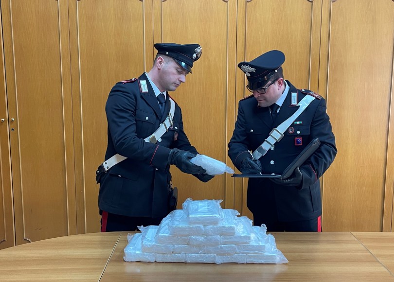 circolazione stradale. Sin da subito entrambi gli occupanti del veicolo si sono mostrati particolarmente agitati ed insofferenti nei confronti degli operanti, e per tale motivo sono stati sottoposti a perquisizione all’esito della quale sono stati trovati in possesso di 16 panetti di sostanza stupefacente del tipo “hashish”, ognuno da circa 1 kg, occultati all’interno di un secchio per la spazzatura.