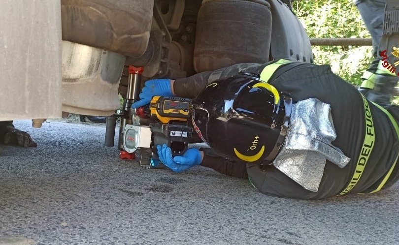 Subito il personale dei vigili del fuoco iniziava le complesse e delicate operazioni per liberare l’uomo, di 51 anni originario di Velletri (RM). Per tale scopo veniva utilizzato uno speciale pistone idraulico, in dotazione sui nostri mezzi, così da sollevare le ruote e liberare il ferito. Successivamente lo stesso veniva preso in consegna dai sanitari del 118 per poi essere trasferito in ospedale a Formia. Sul posto anche i carabinieri e la polizia locale.