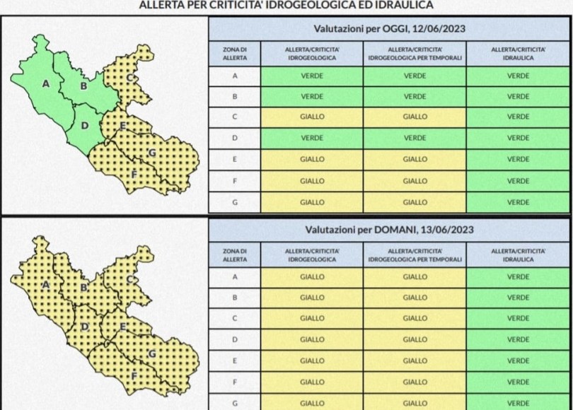 Torna il maltempo nella regione Lazio. Dal pomeriggio di oggi,12/06/2023, e per le successive 6 ore, e dalla tarda mattinata di domani 13/06/2023 per le successive 6-9 ore, si prevedono precipitazioni sparse, a prevalente carattere di rovescio o temporale ad evoluzione pomeridiana, con quantitativi cumulati moderati.