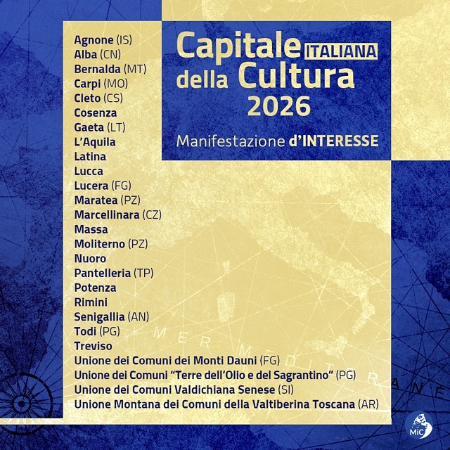 Entro il 15 dicembre 2023, la commissione – composta da sette esperti indipendenti di chiara fama nel settore della cultura, delle arti e della valorizzazione territoriale e turistica – definirà la short list delle 10 città finaliste, e la procedura di valutazione si concluderà per il 29 marzo 2024, con la proclamazione della Capitale Italiana della Cultura 2026.