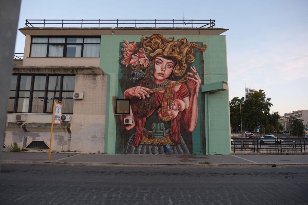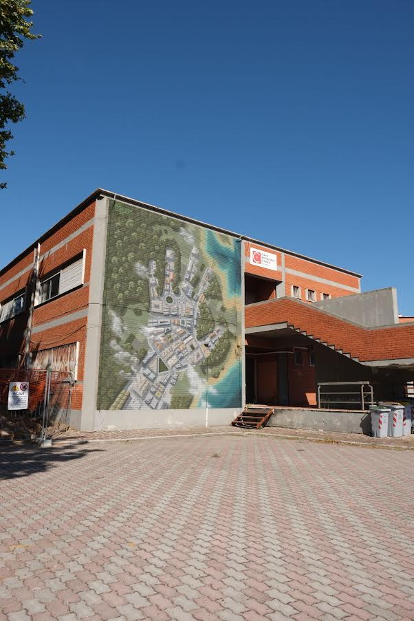 “L’immagine – dichiara invece Oniro, in merito al suo murale dedicata all’ambiente – si presenta come una visione aerea della terra in cui osserviamo il mare, i boschi, la natura, che vengono minacciati dal soggetto centrale dell’opera: un agglomerato urbano a forma di impronta di mano umana che vede le strade come arterie, il traffico come flusso sanguigno, gli edifici come struttura ossea. Si tratta della mano sinistra dell’uomo che brama il dominio sulla natura e opera cementificazioni selvagge, sversamenti inquinanti, emissioni di gas nell’atmosfera. Tali attività compromettono il proliferare della biodiversità mettendo a rischio la nostra stessa vita. Questo progetto – conclude – è una riflessione sulla sostenibilità dell’attuale stile di vita dell’essere umano, un invito a prendere coscienza che siamo parte inscindibile dell’habitat in cui viviamo e abbiamo il dovere di tutelare”.
