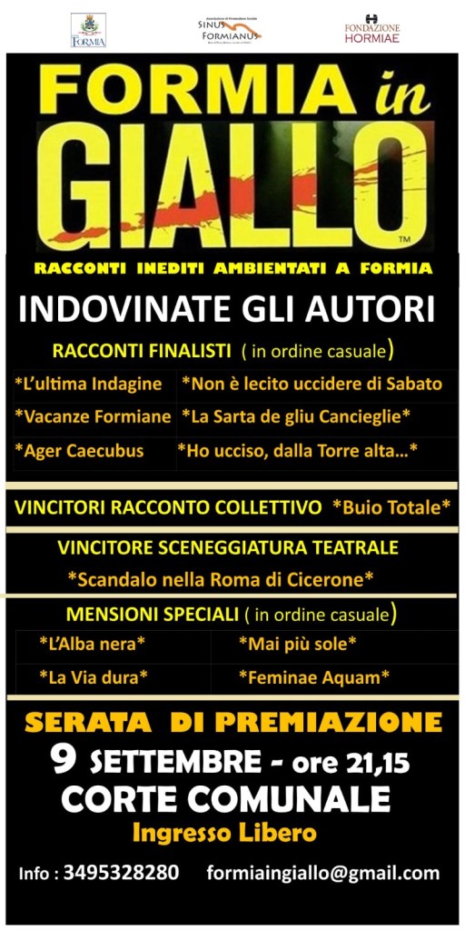 Tutti i finalisti saranno nella nuova antologia di racconti “Formia in giallo” in uscita a Gennaio 2024.