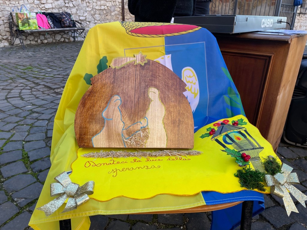 Molto significativo anche il presepio posizionato sotto l’albero, una natività realizzata sul legno, opera sempre dei bambini.