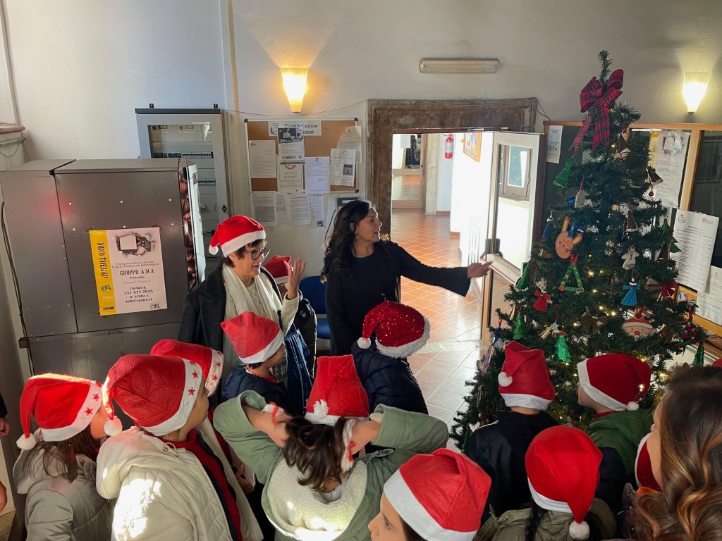 Gli studenti, accompagnati dalle loro insegnanti, hanno addobbato l’albero di Natale con decorazioni realizzate dai bambini stessi durante i laboratori in classe. Lavoretti stupendi.