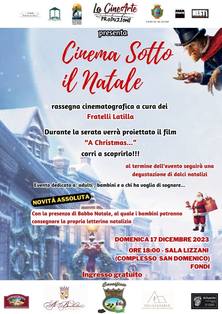 Grande attesa a Fondi per l’evento “Cinema Sotto il Natale”, rassegna cinematografica a cura dei Fratelli Latilla (registi e sceneggiatori) che dopo il successo della rassegna cinematografica “Cinema sotto le stelle”, tornano ad affascinare il pubblico fondano con una serata all’insegna della cinematografia natalizia che vede il mondo dell’infanzia al centro. L’evento, organizzato da La Cinearte Produzioni, nasce con lo scopo di valorizzare il cinema per famiglie ed in particolar modo quello a tema natalizio, un genere che ha portato alla nascita di importanti opere e che ha saputo mettere in relazione l’arte cinematografica e con quella letteraria, pittorica, musicale.