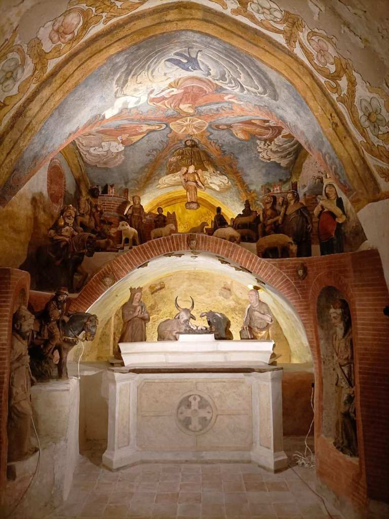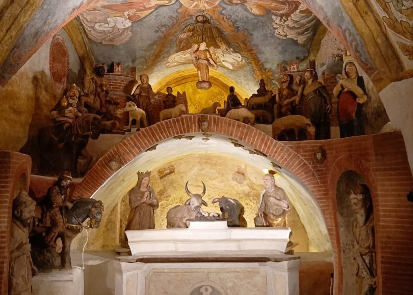 Il presepe di Maranola è un’opera unica in tutto il territorio nazionale, sia per gli aspetti storico-artistici che per il suo culto attivo nella comunità. La Cappella del Presepe, affrescata nel XV secolo sul tema della Natività, è diventata un’opera complessa e monumentale agli inizi del XVI secolo. Gli affreschi della volta raffigurano i quattro Evangelisti annunciatori della nascita di Cristo e sovrastano la scena del presepe, composta da 27 statue in terracotta finemente dipinte, distribuite su due livelli. Il tema dominante nel presepe di Maranola è la luce, che rappresenta Cristo come vera luce che entra nel mondo. L’opera è di straordinaria bellezza e offre a fedeli, curiosi e amanti dell’arte la possibilità di contemplare il mistero del Natale raccontato attraverso una preziosa pagina di pittura e scultura.