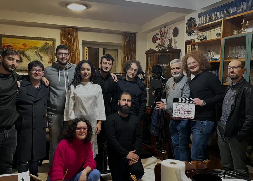 La troupe, guidata dal regista e dall’esperto direttore alla fotografia Michele Lo Giudice, si è avvalsa della collaborazione di Caterina Canino (segretaria di edizione e truccatrice), Gabriele Grasselli alla produzione, Francesco Antonio Grilli alla sceneggiatura, Vincenzo Spagnolo e Luca Esposito come tecnici e figurazioni. L’essenziale colonna sonora, curata da Giacomo Jack Lingua, è stata arricchita dal frammento di un brano della bravissima compositrice Rebecca Rizzetto, diplomata al Conservatorio di Santa Cecilia. Girato principalmente in interni, il corto ha previsto tuttavia delle importanti e significative riprese della piazza Alcide De Gasperi di Fondi, rese possibili dal patrocinio del Comune, sempre attento alle esigenze dei giovani artisti emergenti. Le piccole spese di produzione, sostenute dal team, sono state ammortizzate dagli sponsor dell’iniziativa: La Giudea, Pizzeria – Osteria e Bar Castello.