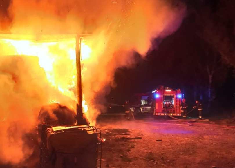 Le fiamme avevano già coinvolto, totalmente, un capannone di circa 300 mq con al suo interno circa 400 balloni di fieno, oltre a diverse attrezzature agricole.
