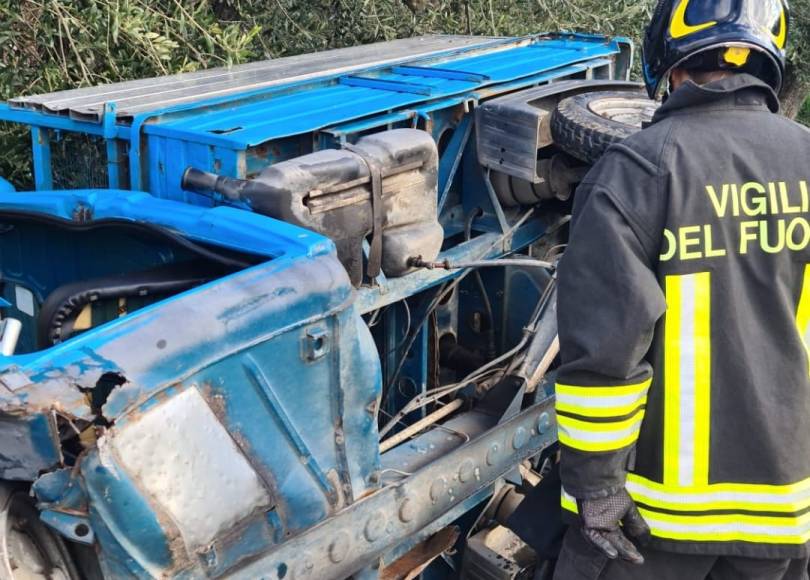 A seguito di tale evento una persona anziana rimaneva ferita ed incastrata all’interno del motocarro ribaltato su un fianco.