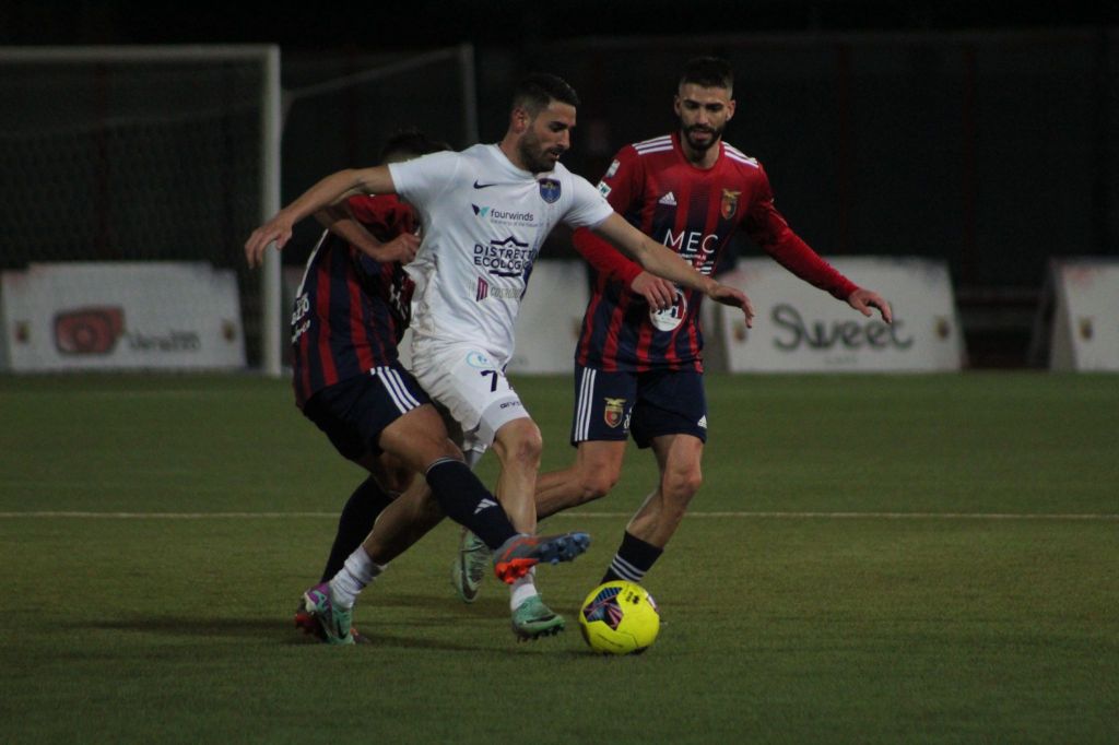 Il match si sblocca al 25′ quando Anastasio, su calcio di punizione, lascia partire una gran conclusione che sorprende Fasolino. A quel punto, sull’onda dell’entusiasmo, i rossoblu di casa prendono in mano le redini del gioco e collezionano diverse occasioni da gol, non riuscendo però a trovare il raddoppio.