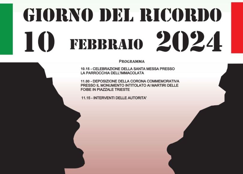 Sabato 10 febbraio, a Latina, si svolgerà una cerimonia commemorativa in occasione del Giorno del Ricordo. Alle 10.15 è prevista la celebrazione di una Santa Messa presso la Parrocchia Immacolata Concezione, situata in Viale XXIV Maggio, e a seguire la deposizione della corona commemorativa presso il monumento intitolato ai Martiri delle Foibe di piazzale Trieste.