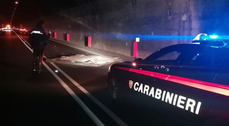 Stando alle prime informazioni raccolte dai militari dell’Arma, un camion-frigo, durante la sua marcia, ha perso lo sportellone posteriore e parte del carico sulla sede stradale senza accorgersi dell’accaduto. Un’auto in transito ha successivamente preso in pieno lo sportellone: uno scontro che ha provocato gravi danni al veicolo.