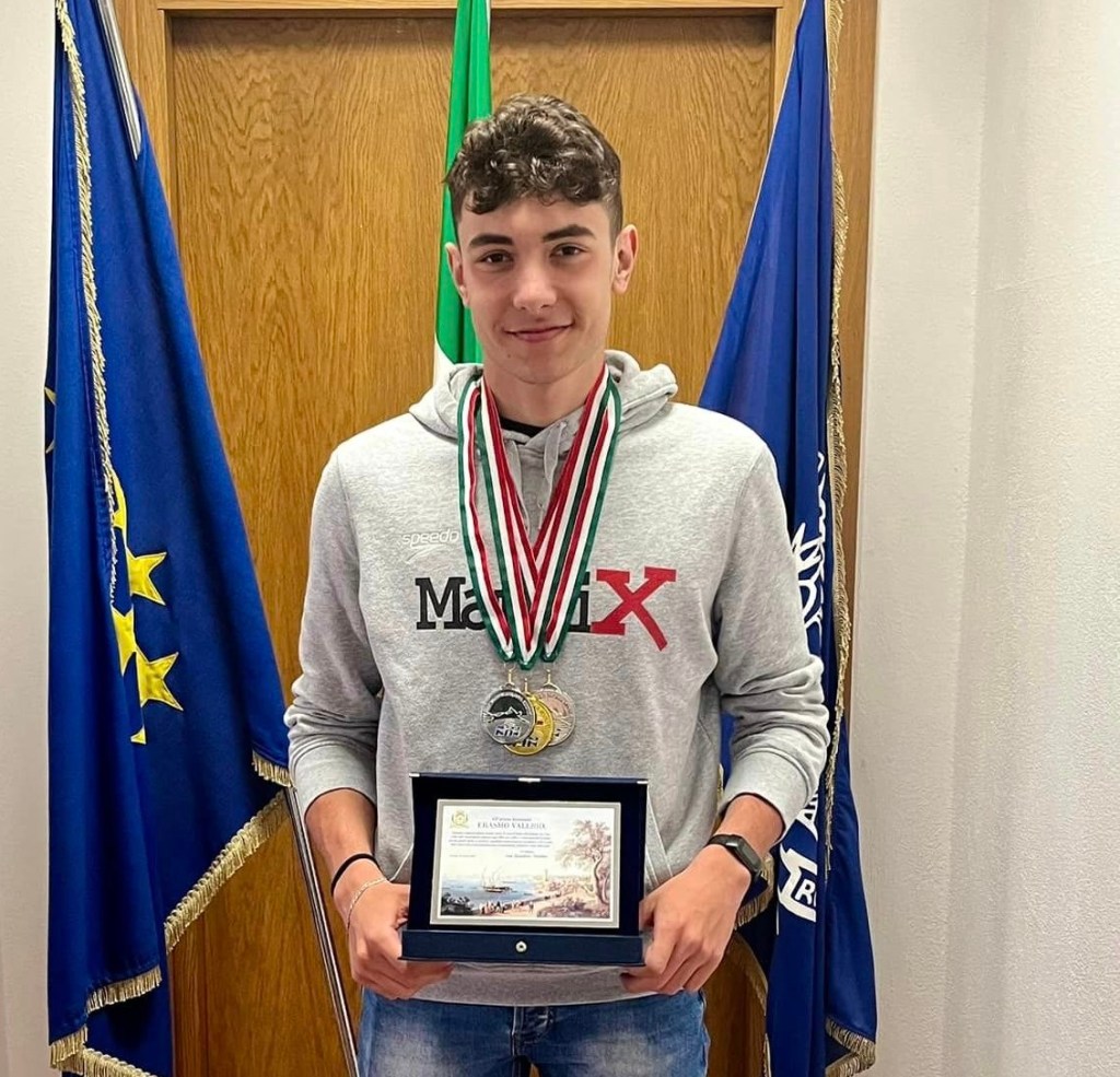 Per la promessa formiana, argento nel 2022 nei tricolori di nuoto di fondo, si tratta dell’ennesimo sigillo ad una carriera precoce che sta regalando risultati altisonanti che confermano il suo enorme potenziale tecnico e fisico. “Un vero e proprio riconoscimento che questa amministrazione riserva ad un atleta che con impegno, sacrificio e dedizione, oltre al suo talento, è riuscito a salire sul podio per ben tre volte in manifestazioni di carattere nazionale – ha commentato il sindaco Taddeo – Un esempio di passione e amore per il nuoto, ma anche di abnegazione assoluta. Complimenti ad Erasmo, al suo allenatore e a tutta la società del centro sportivo XXV Ponti a cui va dato l’onore e il merito di far crescere e far maturare tanti ragazzi nello sport come nella vita”.