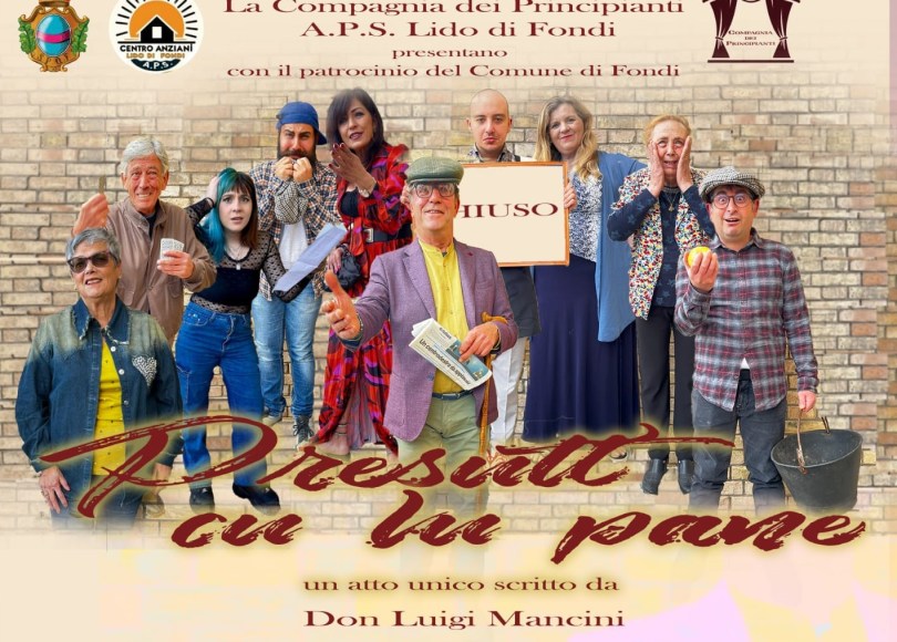 Grande emozione tra gli iscritti del centro anziani di Selvavetere, a Fondi, per il grande debutto teatrale in programma domenica 5 maggio alle ore 19:00 quando andrà in scena con “Presutt cu lu pane”. Regia di Tiberio Ettore Muccitelli. Testo di Don Luigi Mancini.